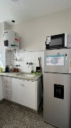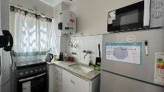 Equipado. Cuenta con cocina integrada, heladera con freezer, horno eléctrico, anafe, pava eléctrica y vajilla completa.