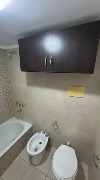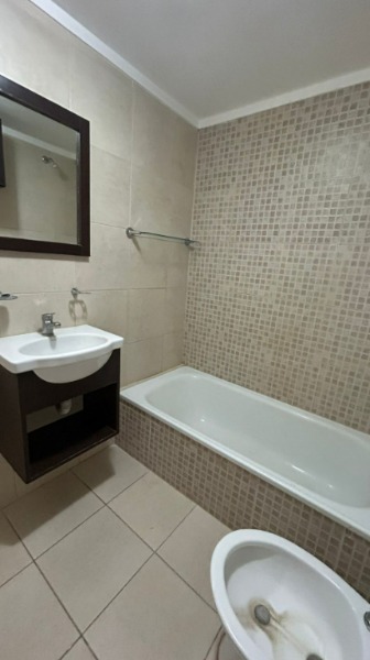 El baño completo, revestido y equipado con bañera, bidet y sanitarios en buen estado, brinda confort y practicidad.
